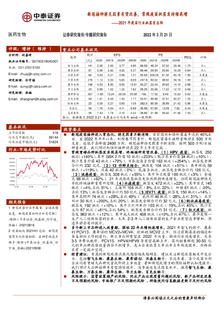 中泰证券:2021年疫苗行业批签发总结:新冠接种挤兑因素有望改善,常规疫苗批签发持续高增.pdf