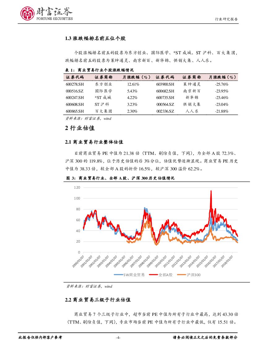 财富证券:商业贸易行业月度报告:估值优势逐渐显现,关注行业龙头公司.pdf