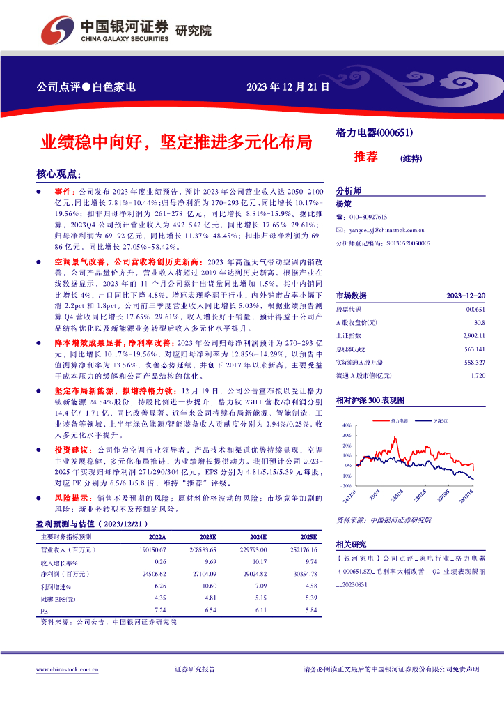 中国银河:格力电器(000651)-业绩稳中向好,坚定推进多元化布局.pdf