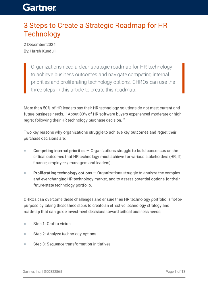 Gartner:2024年构建人力资源HR技术战略路线图的三大步骤研究报告(英文版).pdf