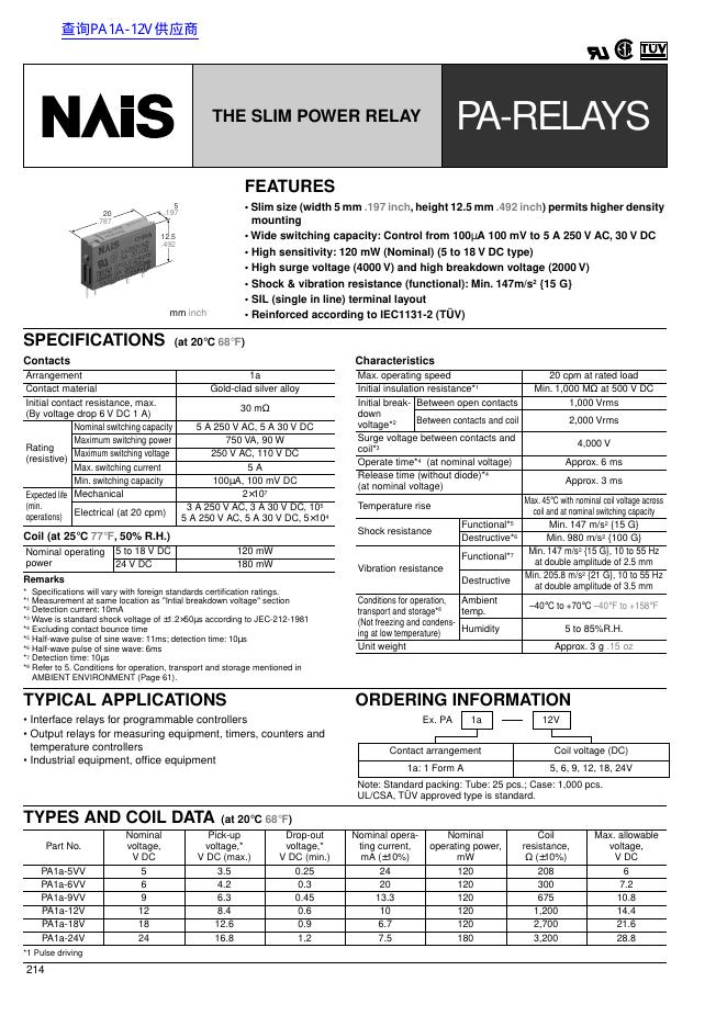 NAIS THE SLIM POWER RELAY 数据手册.pdf