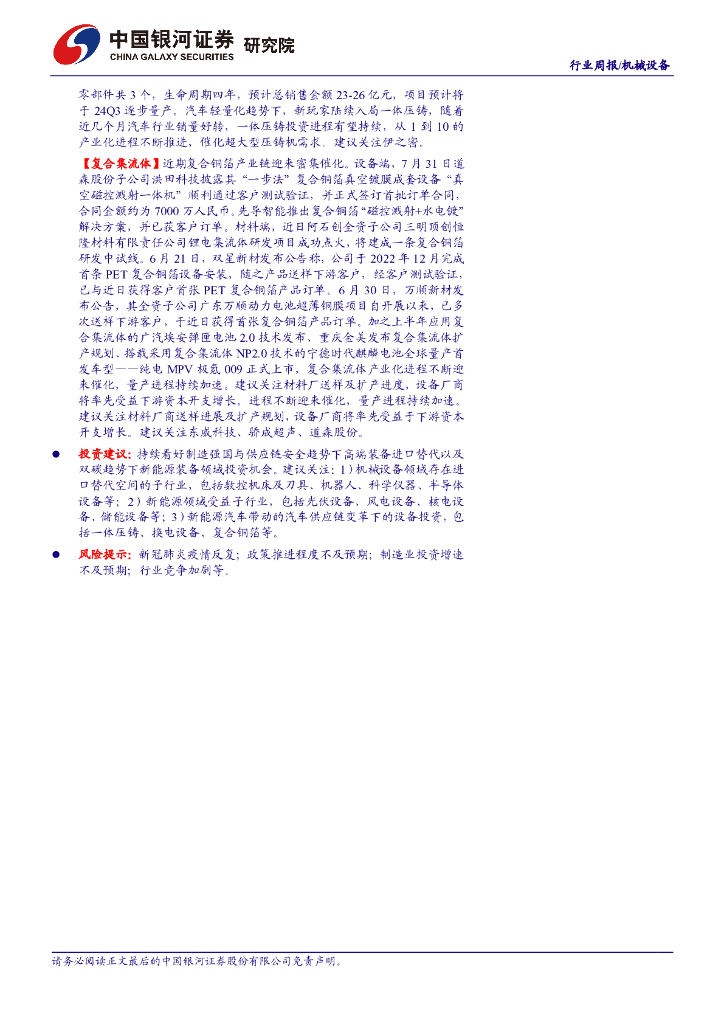 中国银河:机械设备行业周报:世界机器人大会召开,关注产业链核心部件投资机会.pdf