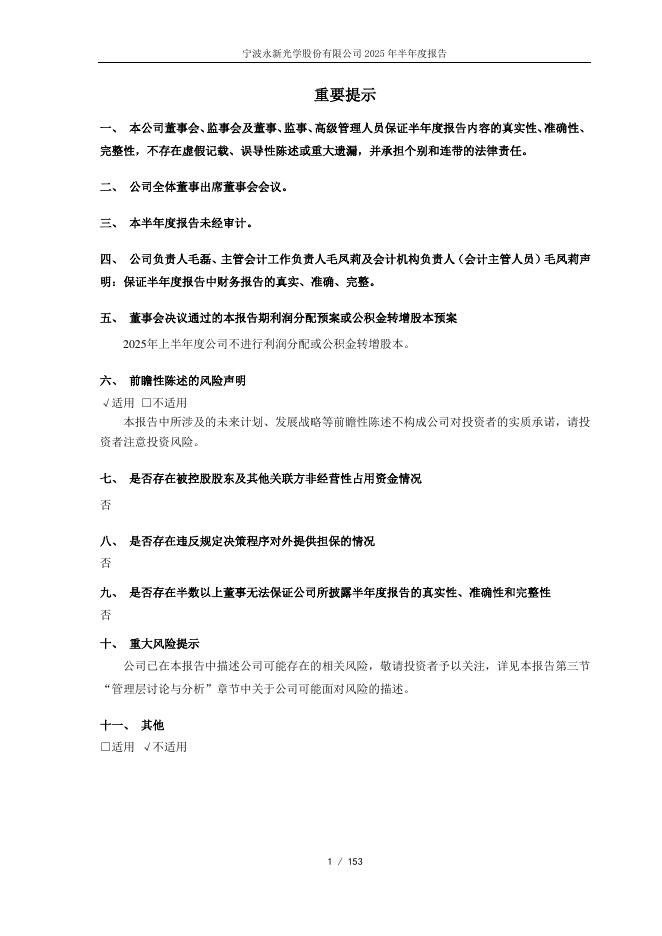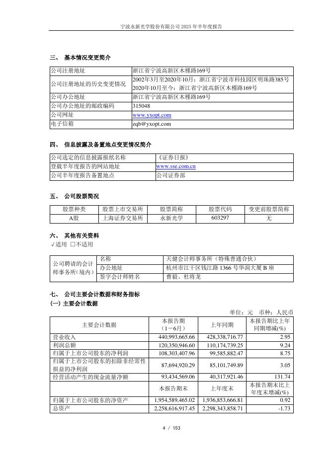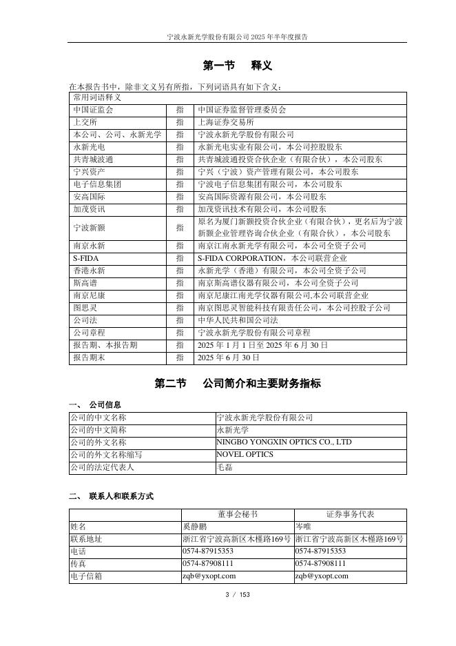 603297-永新光学:宁波永新光学股份有限公司2025年半年度报告.pdf