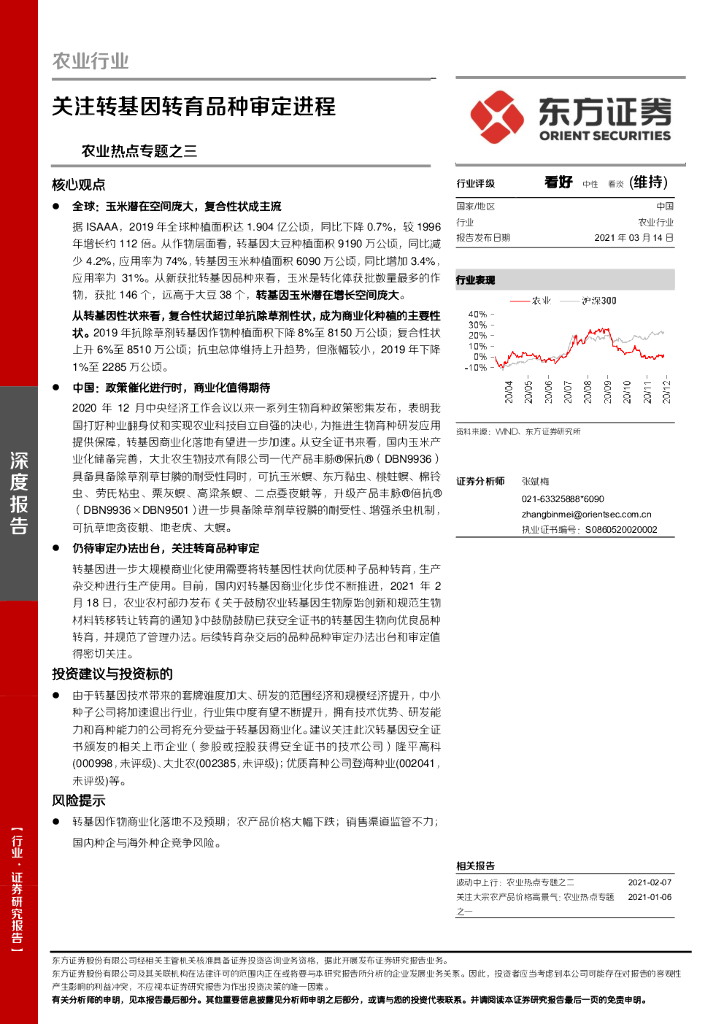 东方证券:农业热点专题之三:关注转基因转育品种审定进程.pdf