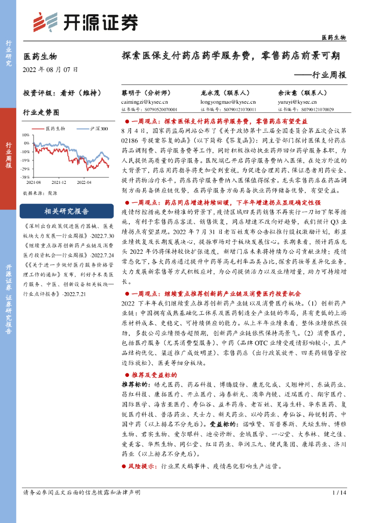 开源证券:医药生物行业周报:探索医保支付药店药学服务费,零售药店前景可期.pdf