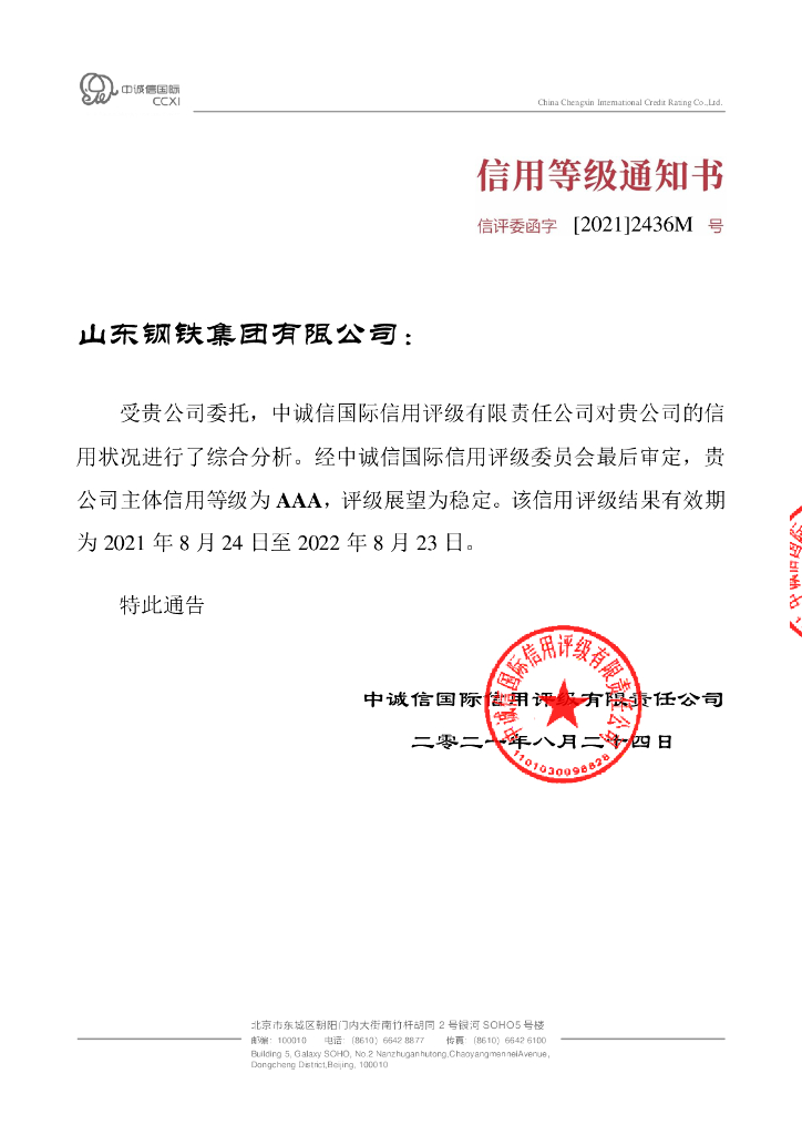 中诚信:山东钢铁集团有限公司主体信用评级报告及跟踪评级安排.pdf