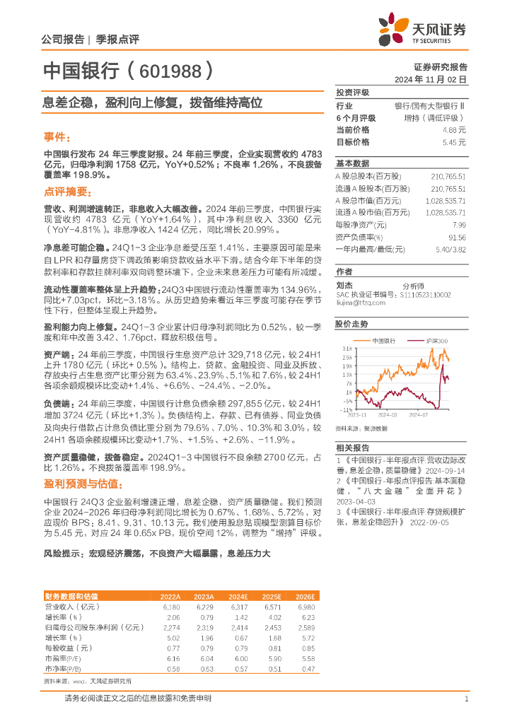 天风证券:中国银行(601988)-息差企稳,盈利向上修复,拨备维持高位.pdf