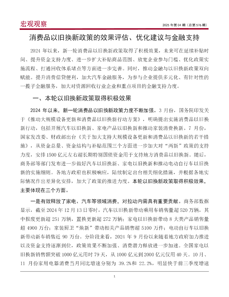 中国银行研究院:《宏观观察》2025年第4期:消费品以旧换新政策效果评估、优化建议与金融支持.pdf