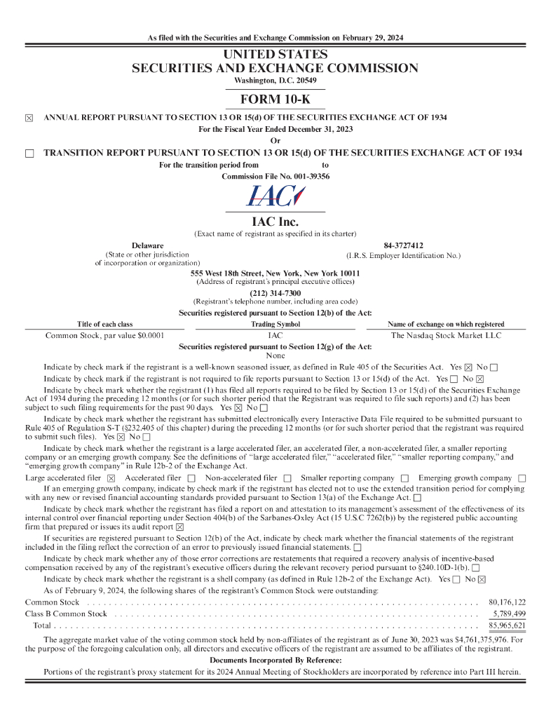 IAC/InterActiveCorp(IAC)2023财年年度报告(英文版).pdf
