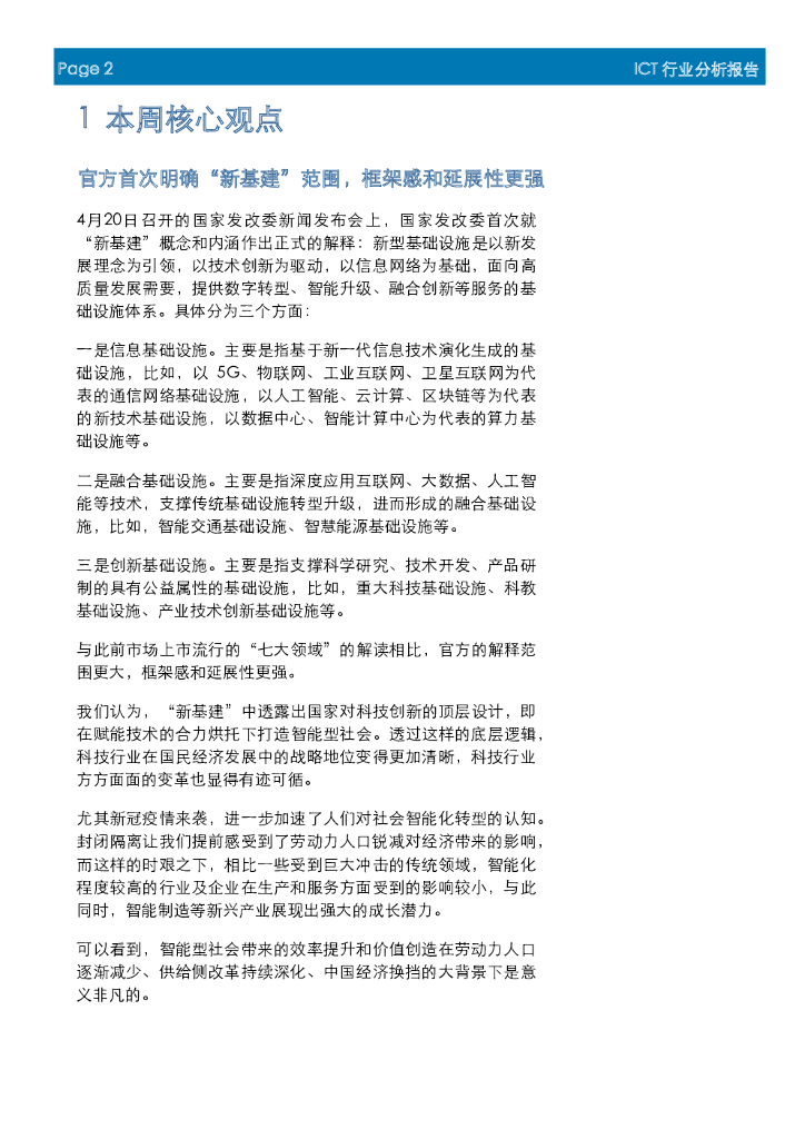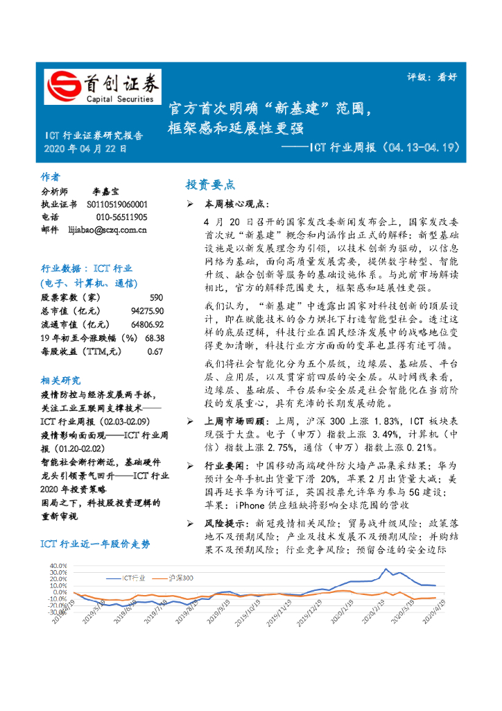 首创证券:ICT行业周报:官方首次明确“新基建”范围,框架感和延展性更强.pdf