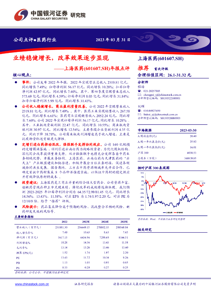 中国银河:上海医药(601607)-年报点评:业绩稳健增长,改革效果逐步显现.pdf