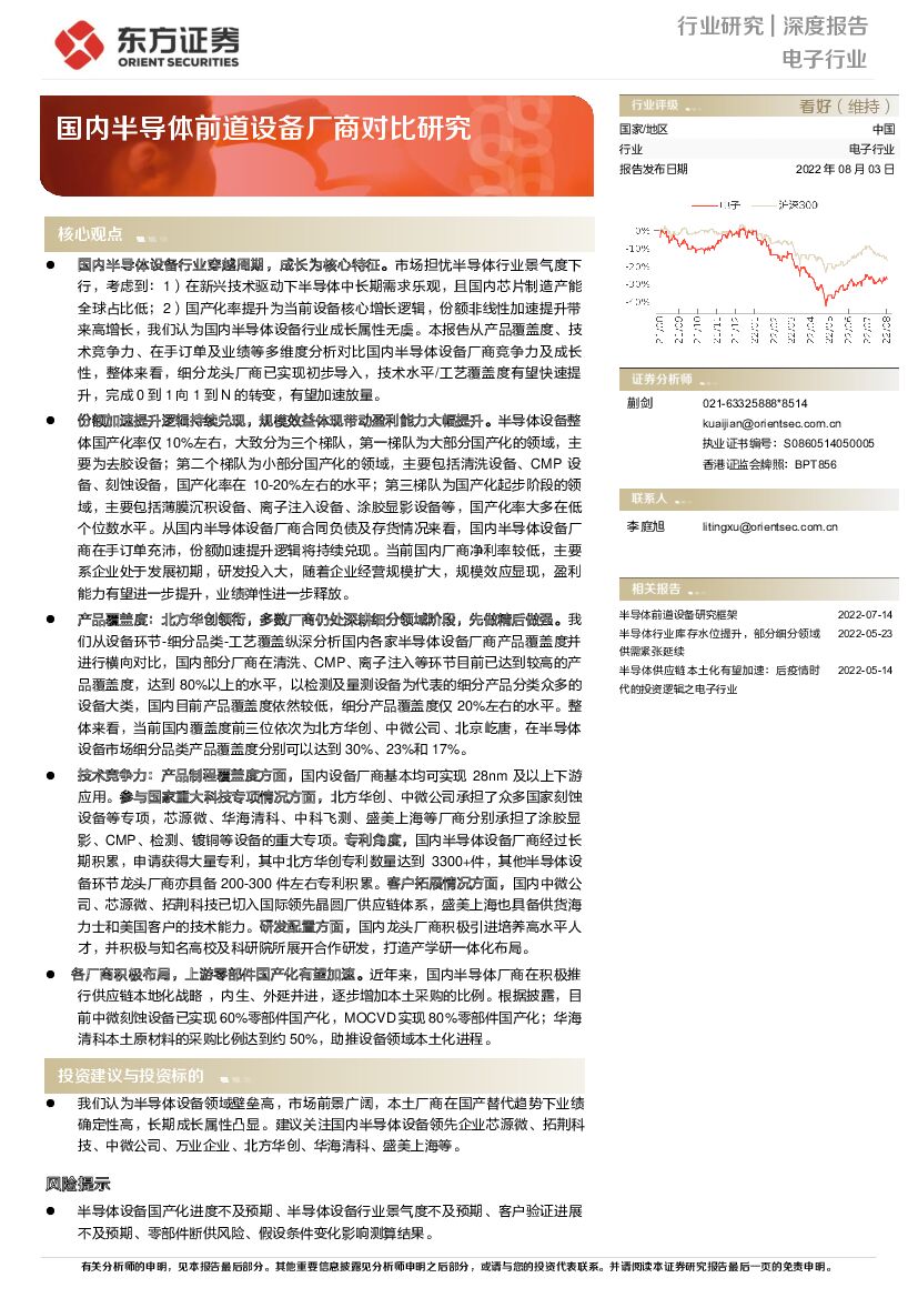 东方证券:电子行业深度报告:国内半导体前道设备厂商对比研究.pdf