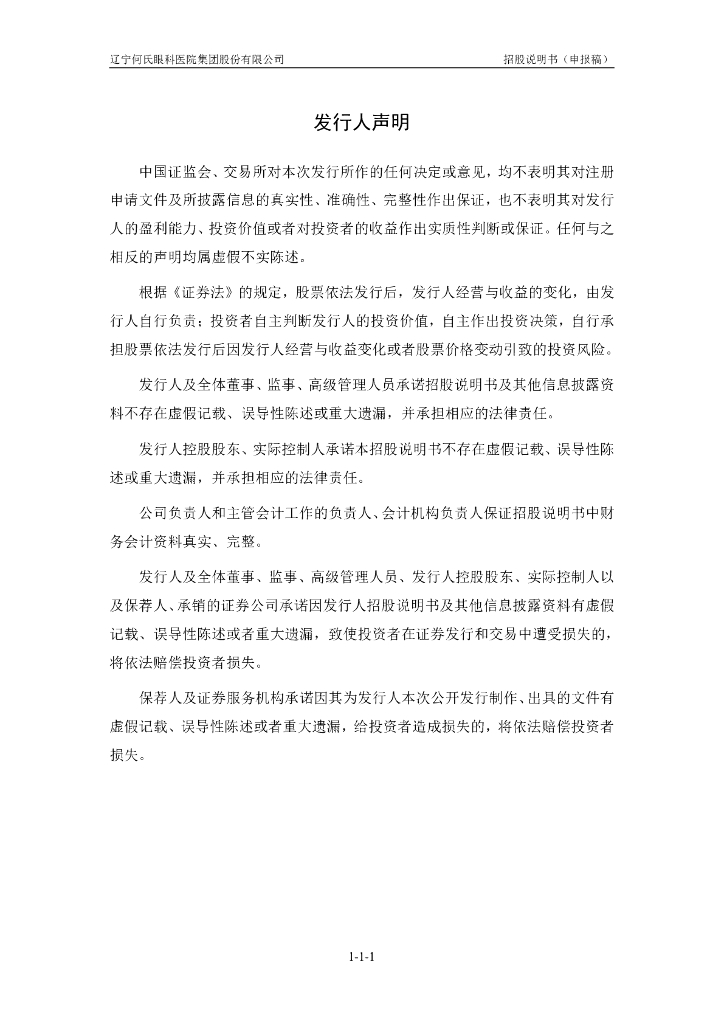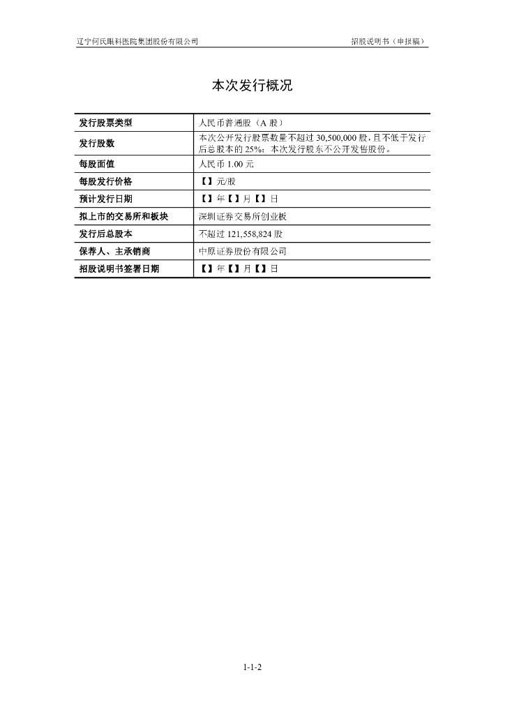 辽宁何氏眼科医院集团股份有限公司深交所创业板IPO上市招股说明书.pdf