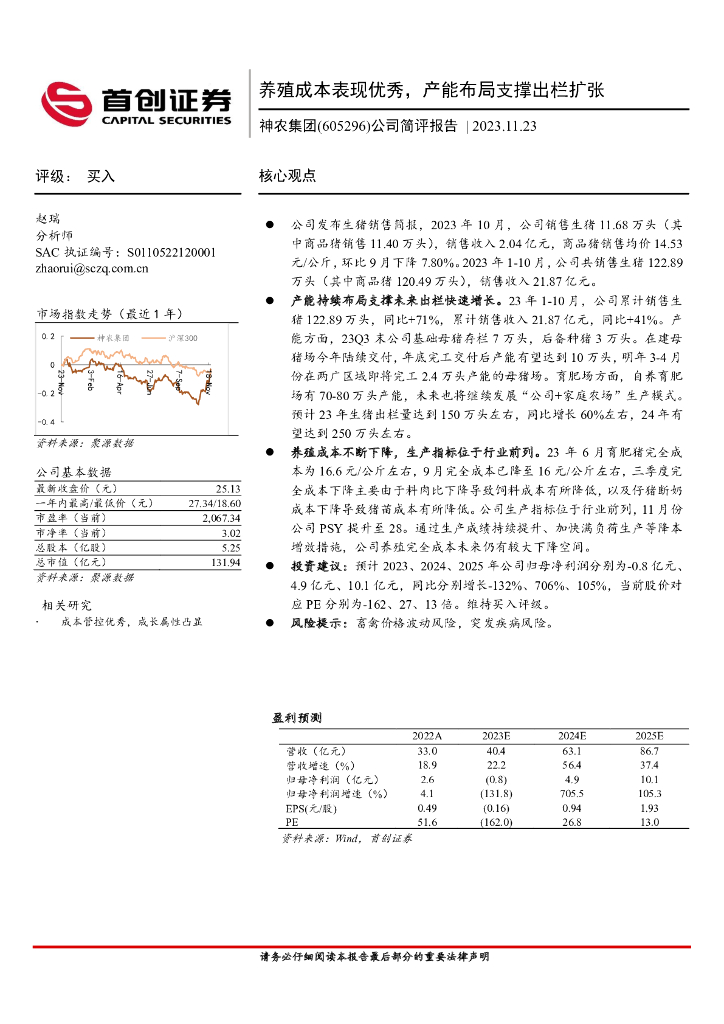 首创证券:神农集团(605296)-公司简评报告:养殖成本表现优秀,产能布局支撑出栏扩张.pdf