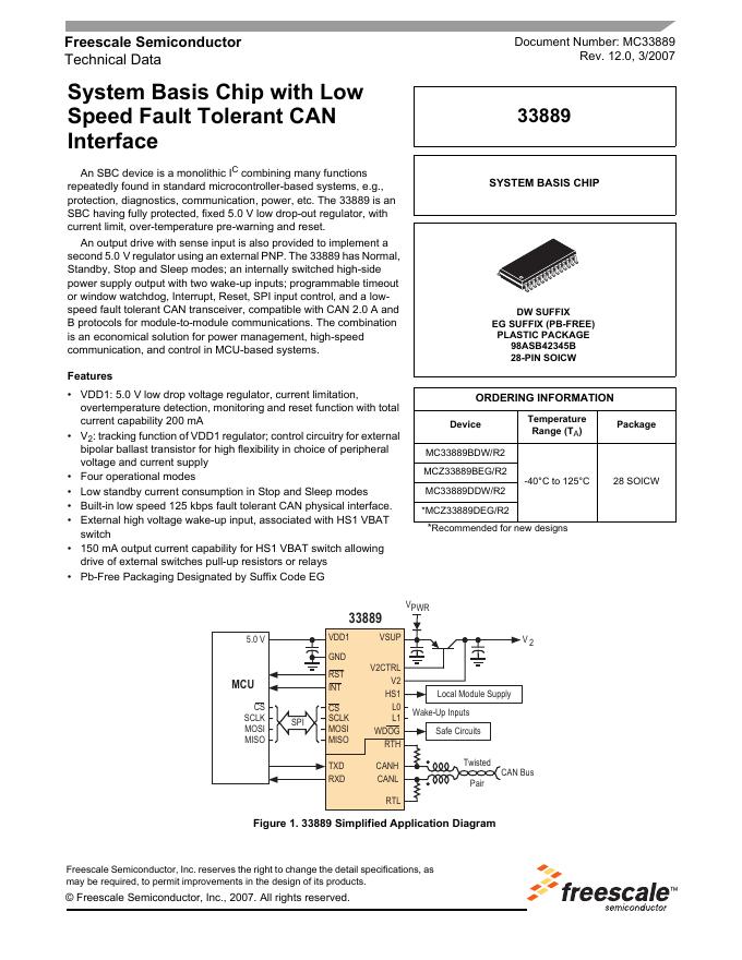 FREESCALE SEMICONDUCTOR 33889 Freescale Semiconductor 技术手册.pdf