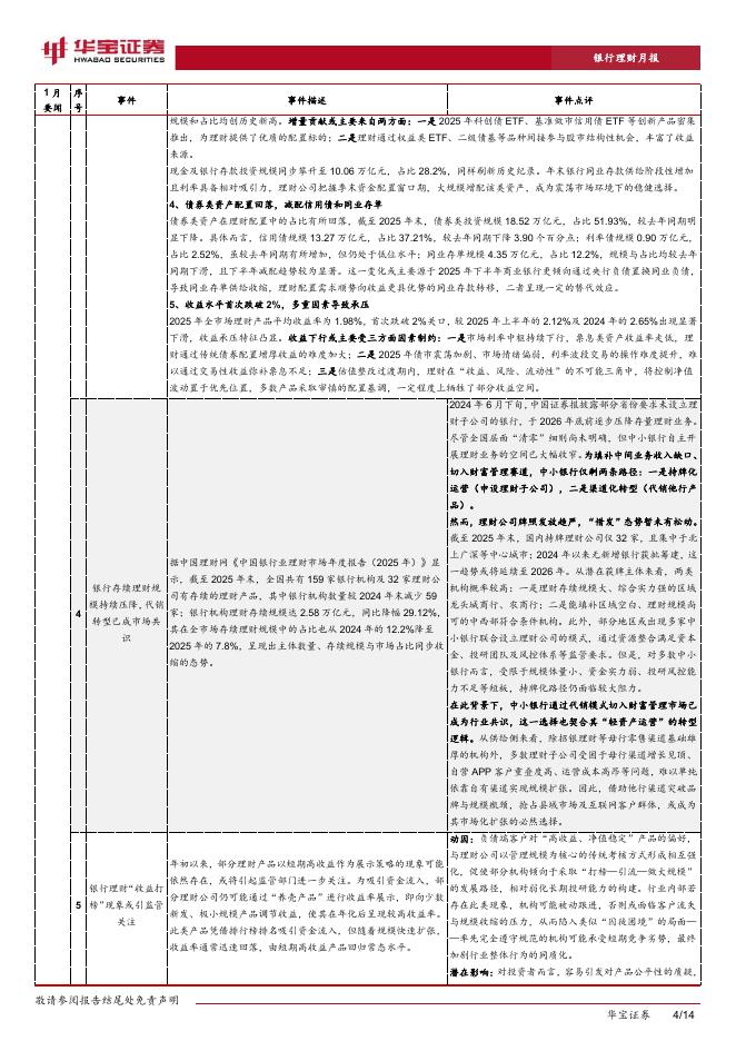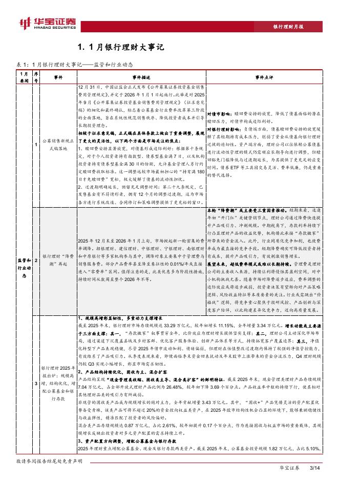 华宝证券:2026年1月银行理财市场月报:银行理财大事记:理财市场降费潮又起,中小银行代销路谋新.pdf