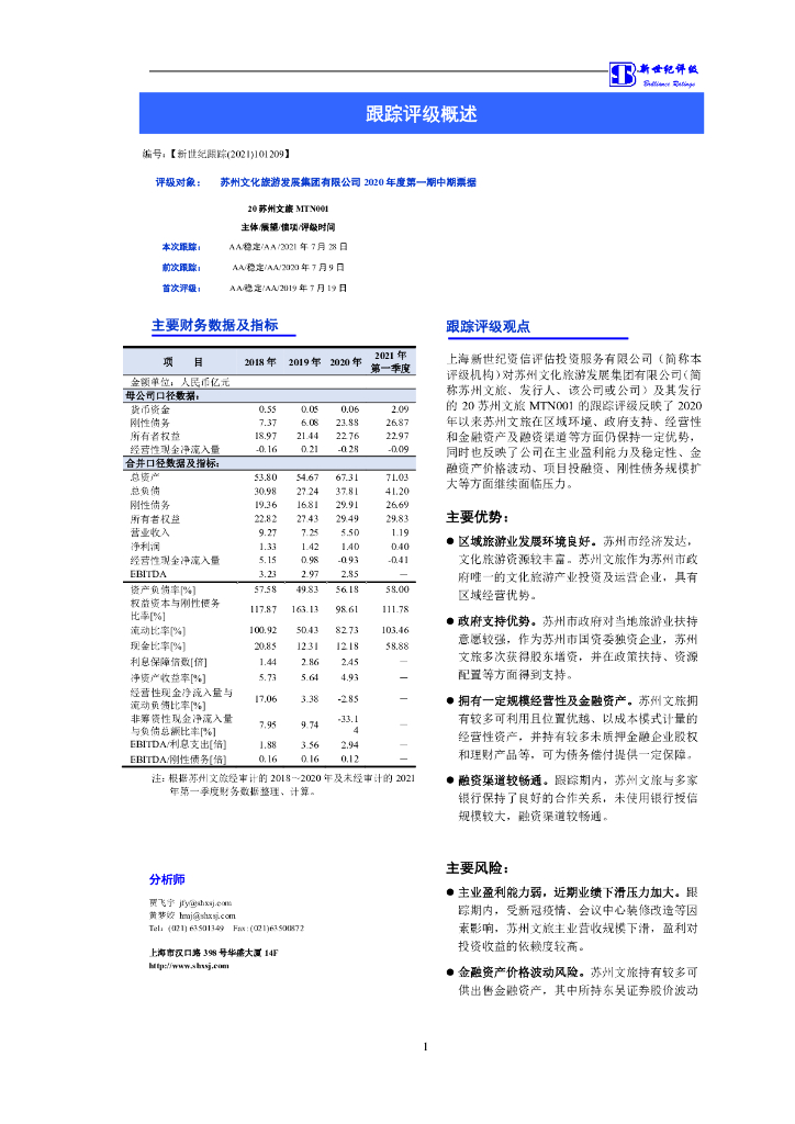 新世纪:苏州文化旅游发展集团有限公司主体信用评级报告.pdf