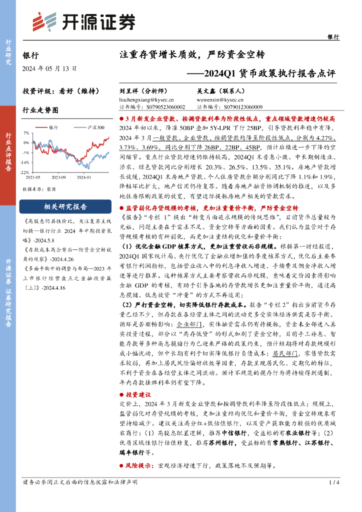开源证券:2024Q1货币政策执行报告点评:注重存贷增长质效,严防资金空转.pdf