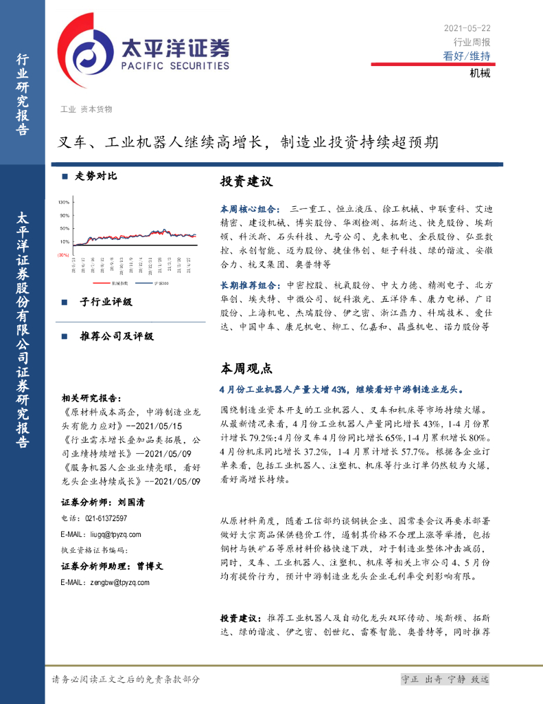 太平洋证券:机械行业周报:叉车、工业机器人继续高增长,制造业投资持续超预期.pdf