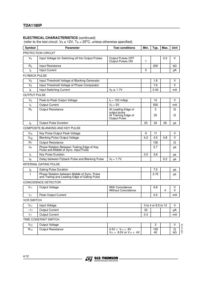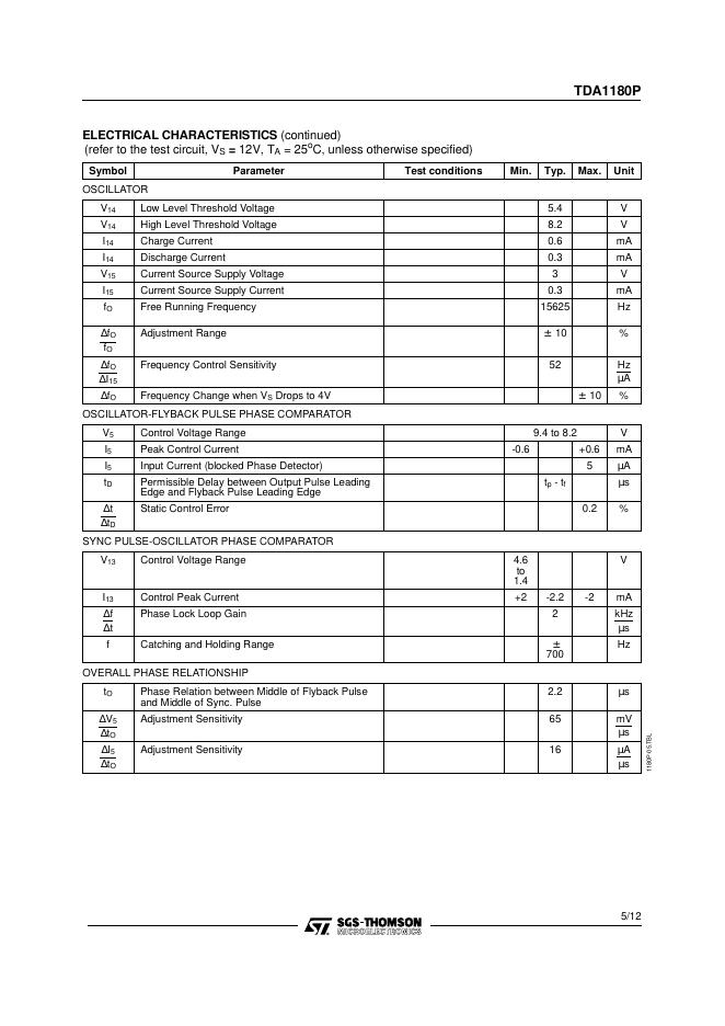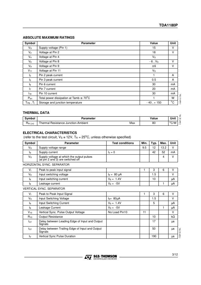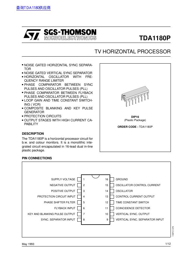 SGS-THOMSON TDA1180P TV HORIZONTAL PROCESSOR 数据手册.pdf