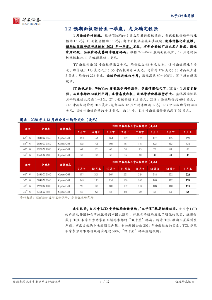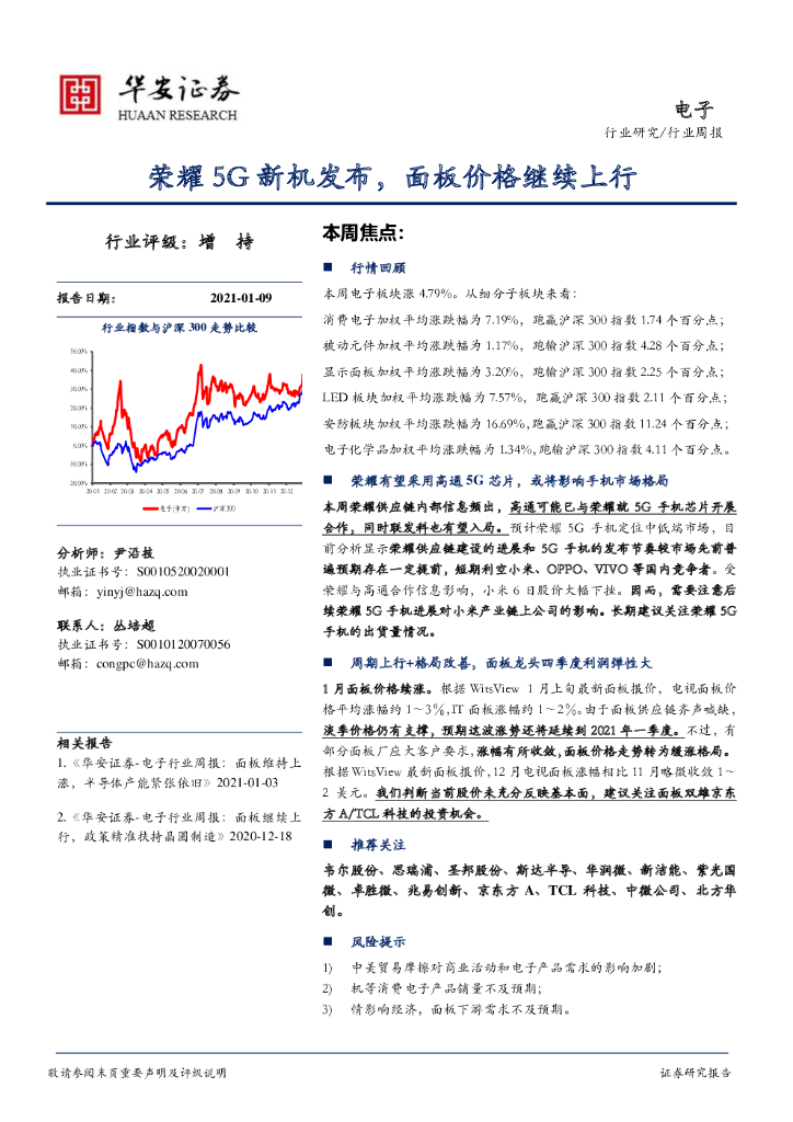 华安证券:电子行业周报:荣耀5G新机发布,面板价格继续上行.pdf