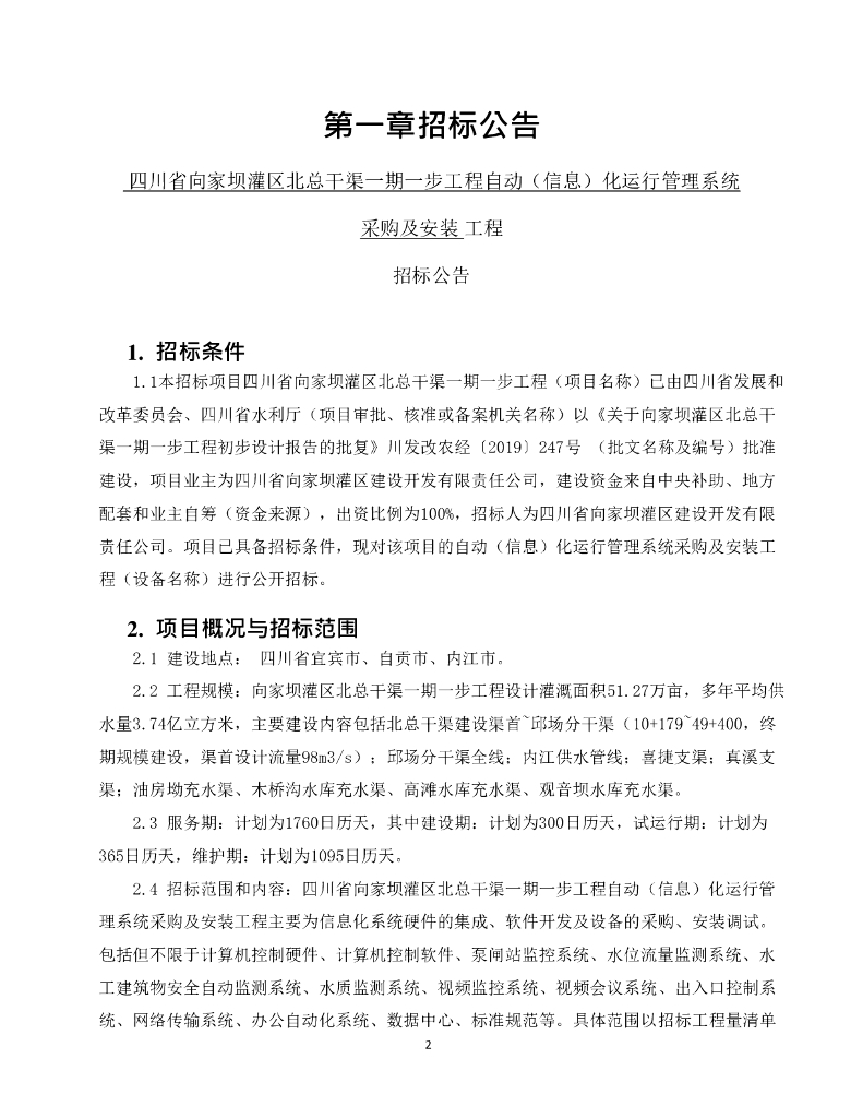 智慧水利-四川省向家坝灌区北总干渠一期一步工程自动(信息)化运行管理系统招标文件.pdf
