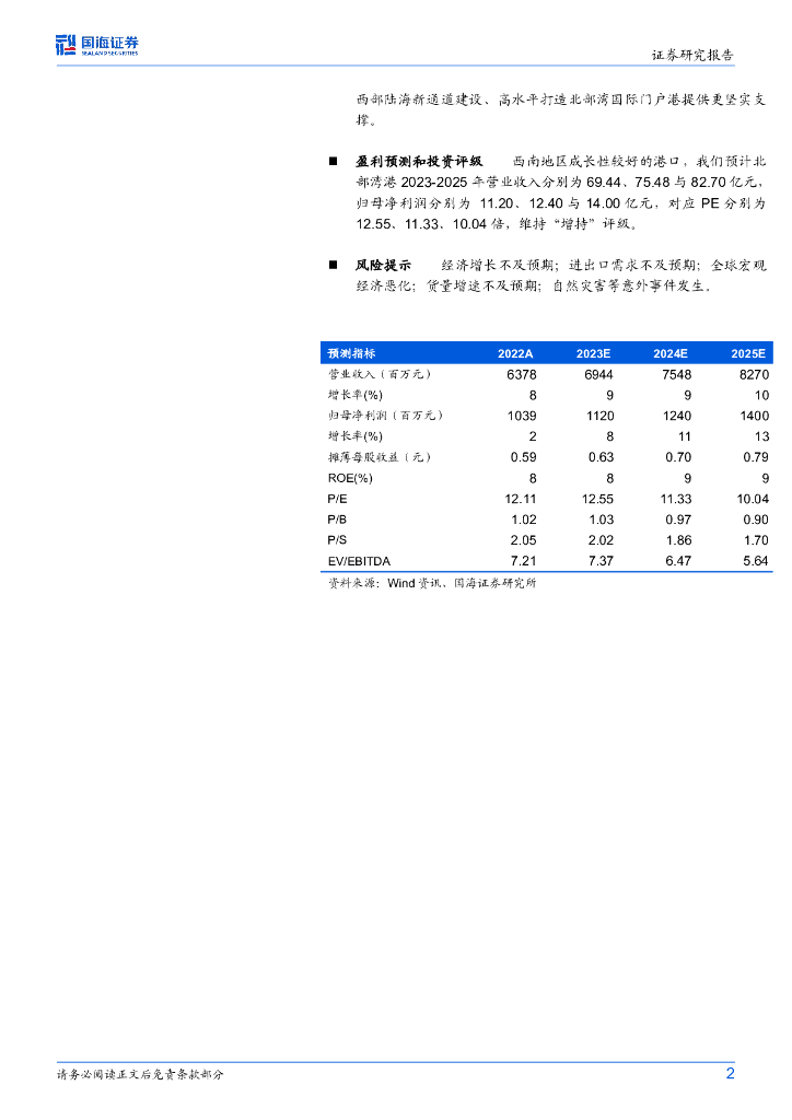 国海证券:北部湾港(000582)-2023年业绩快报点评:2023年归母净利润两位数增长,铁山新港区巩固成长性.pdf