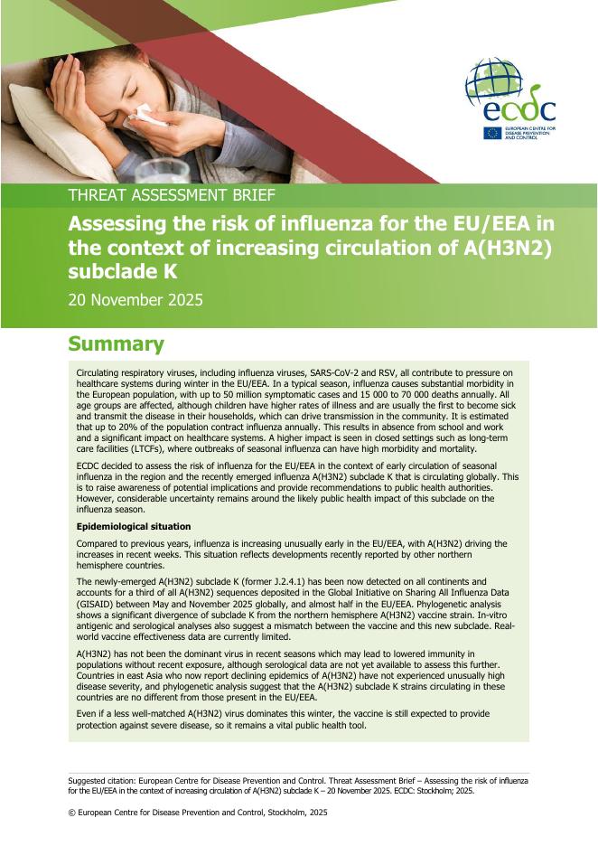 欧洲疾控中心:2025年评估欧盟/欧洲经济区流感风险,在A(H3N2)亚型K的传播增加的背景下报告(英文版).pdf