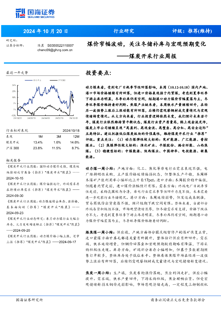 国海证券:煤炭开采行业周报:煤价窄幅波动,关注冬储补库与宏观预期变化.pdf