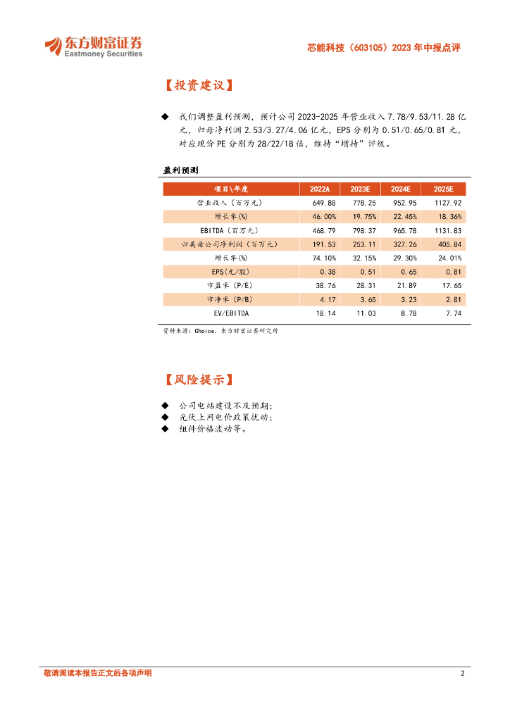 东方财富证券:芯能科技(603105)-2023年中报点评:电站规模稳步增长,绿证落地增厚利润.pdf