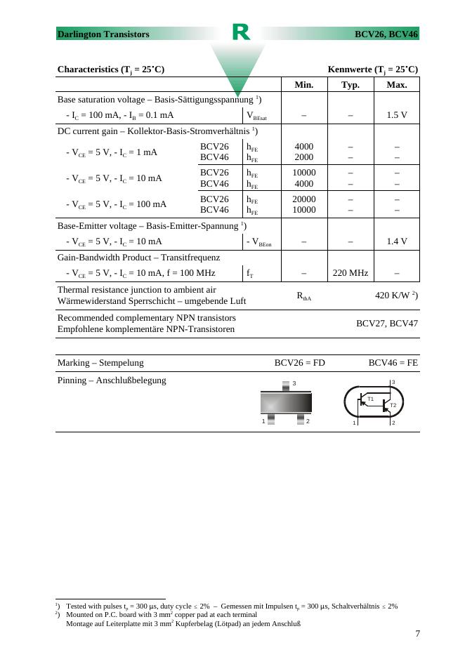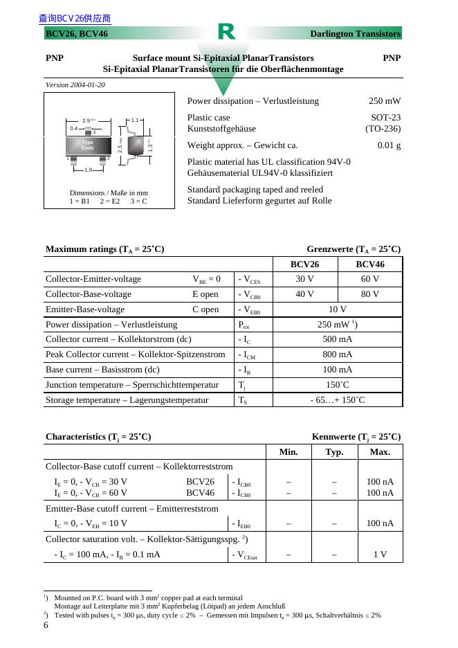 PNP BCV26, BCV46 Darlington Transistors 数据手册.pdf