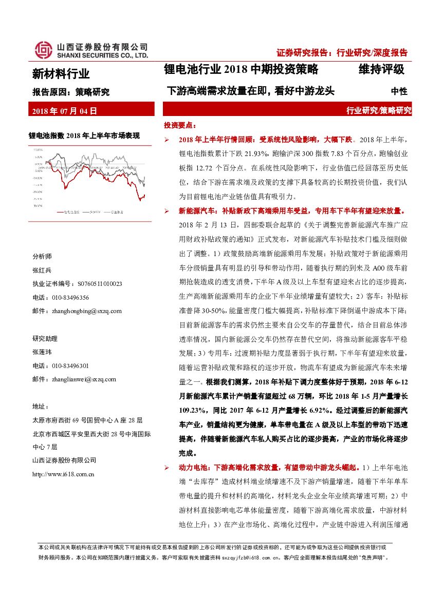 山西证券:锂电池行业2018中期投资策略:下游高端需求放量在即,看好中游龙头.pdf