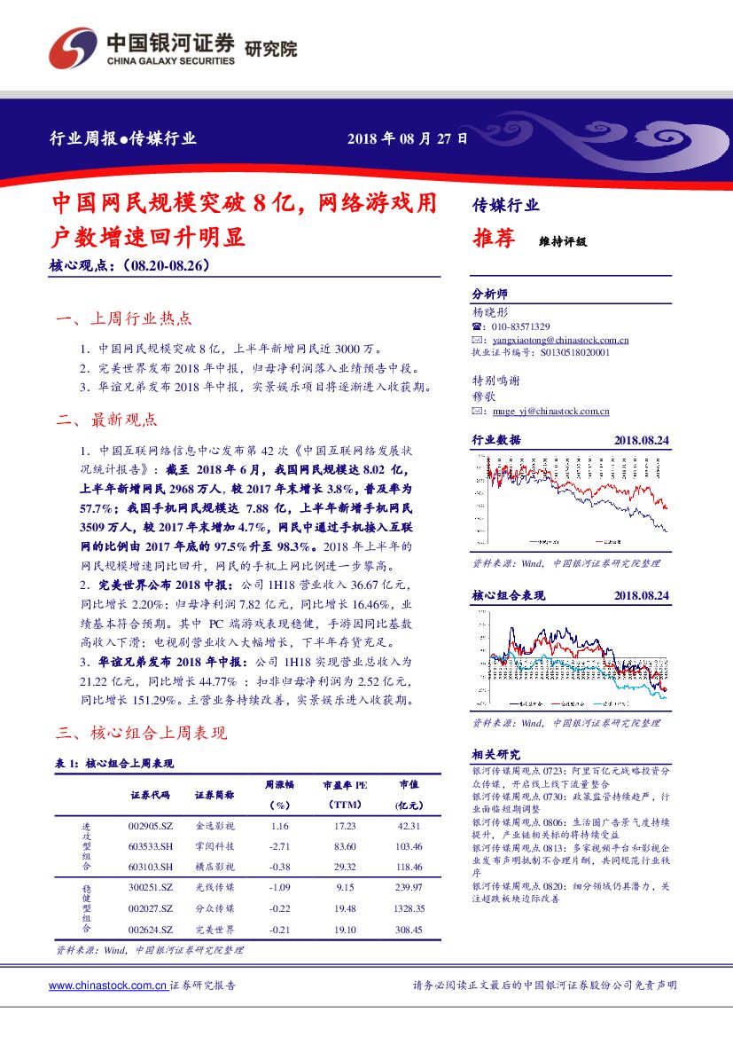 中国银河:传媒行业周报:中国网民规模突破8亿,网络游戏用户数增速回升明显.pdf