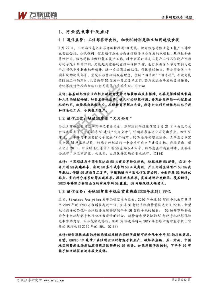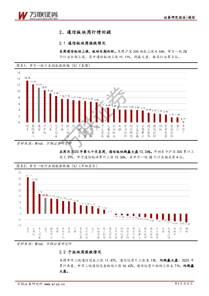 万联证券:通信行业周观点:通信板块涨幅领先,联通5G建设“火力全开”.pdf