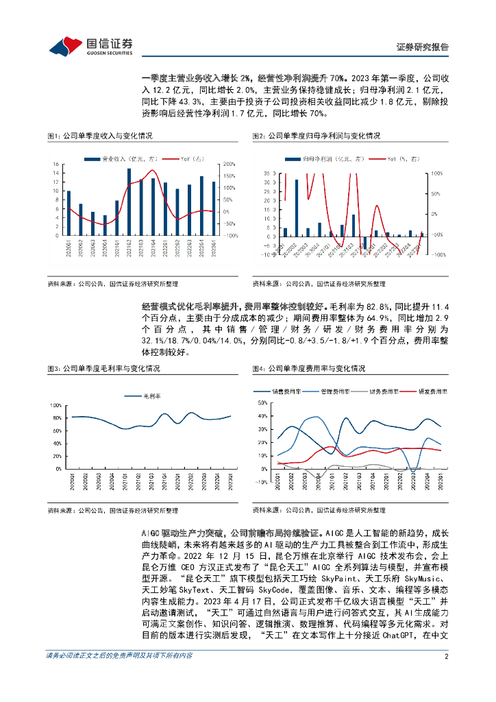 国信证券:昆仑万维(300418)-经营性净利润增长70%,AIGC进展迅速.pdf