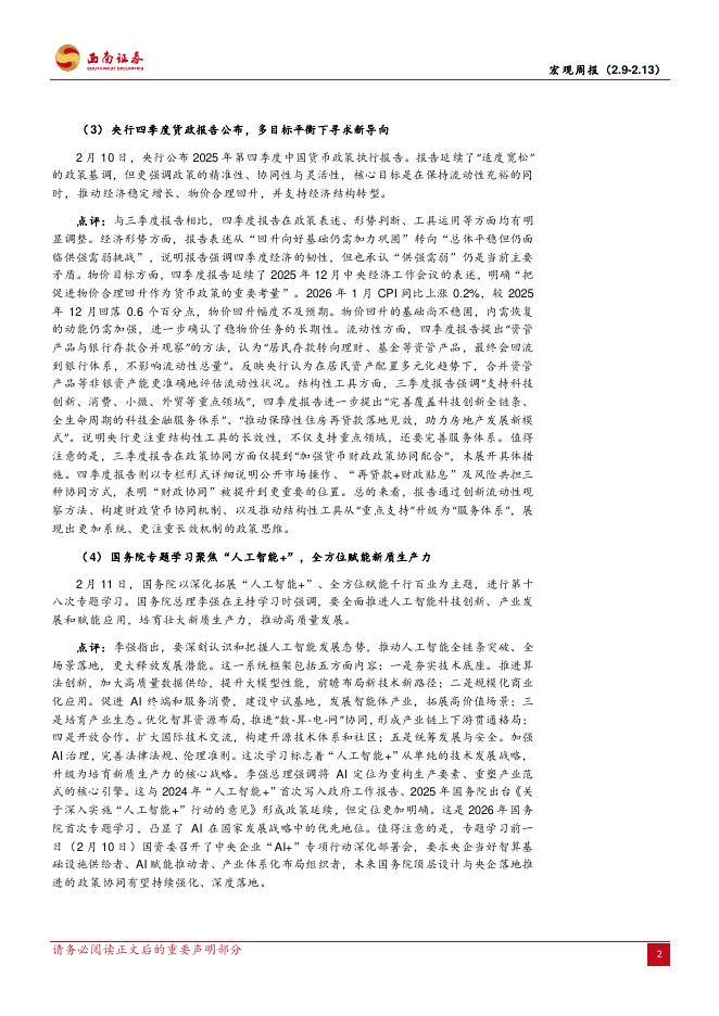 西南证券:宏观周报:货币政策兼顾多目标平衡,美国非农就业超预期走高-260214.pdf