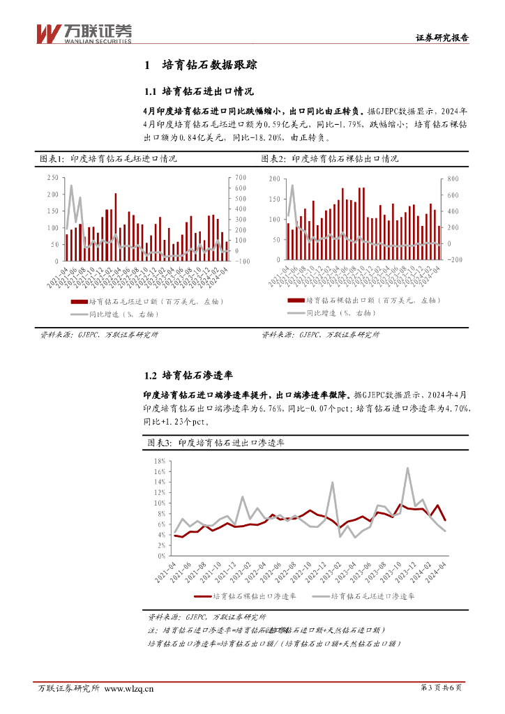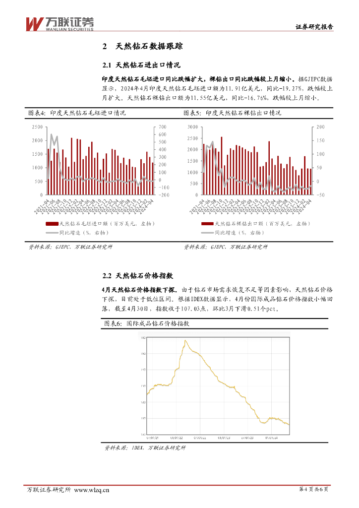 万联证券:商贸零售行业跟踪报告:4月印度培育钻石毛坯进口额同比跌幅缩小,进口端渗透率提升.pdf