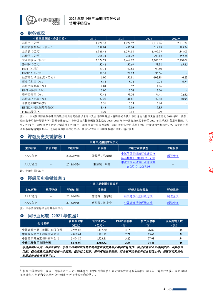 中诚信:中建三局集团有限公司主体信用评级报告及跟踪评级安排.pdf