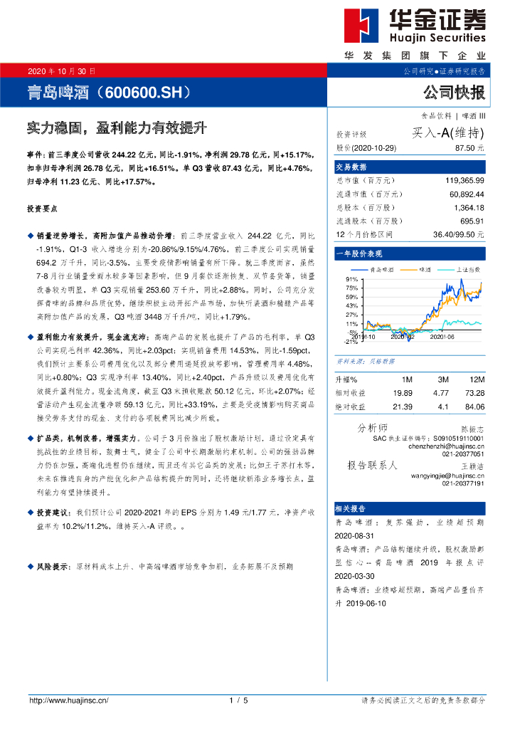 华金证券:青岛啤酒(600600)-实力稳固,盈利能力有效提升.pdf
