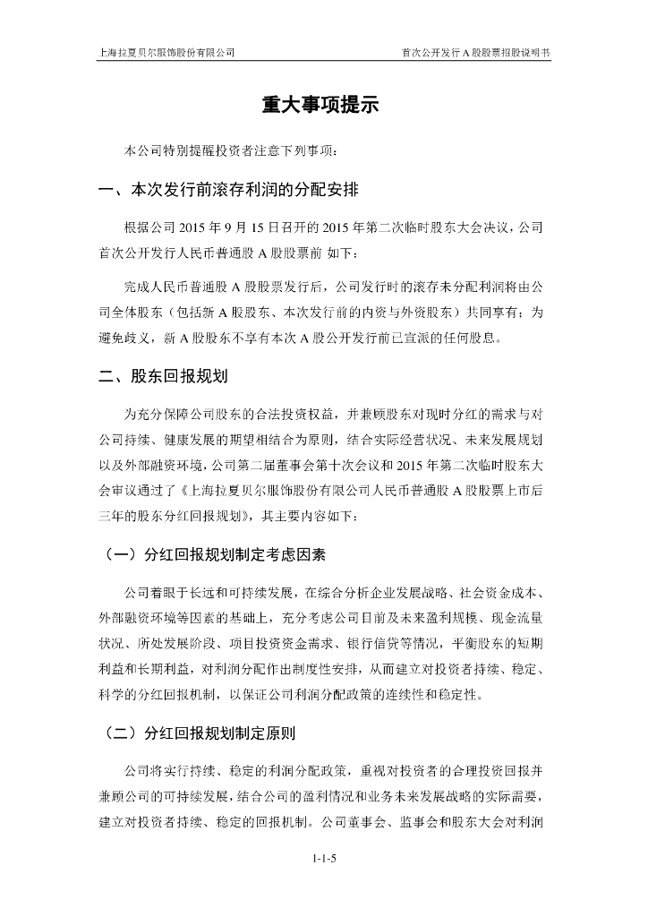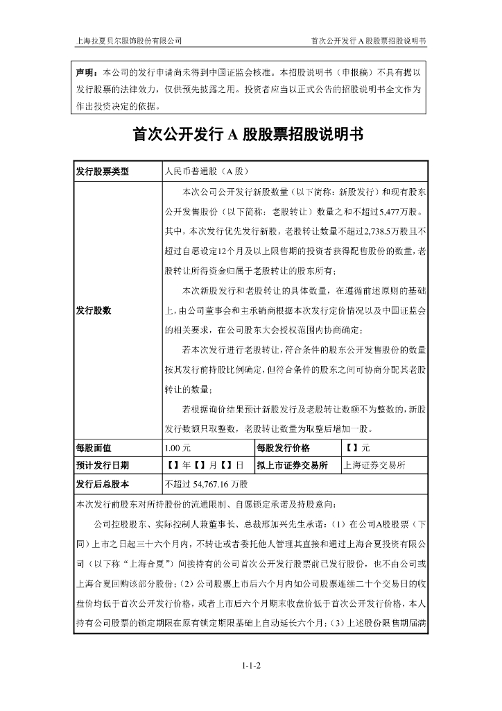 上海拉夏贝尔服饰股份有限公司上交所风险警示板IPO上市招股说明书.pdf