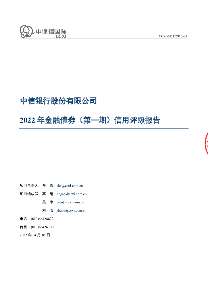 中诚信:中信银行股份有限公司2022年金融债券(第一期)信用评级报告.pdf