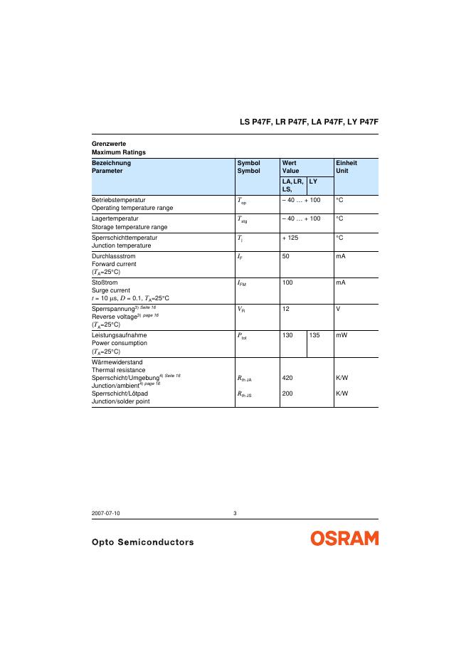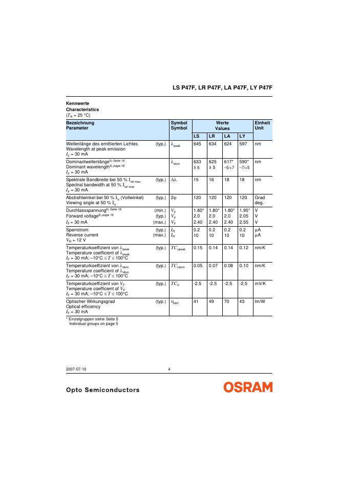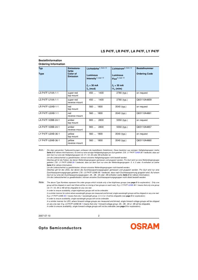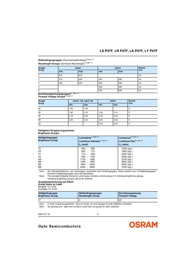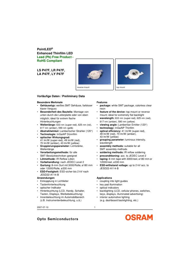 OSRAM SYLVANIA LS P47F, LR P47F, LA P47F, LY P47F 数据手册.pdf