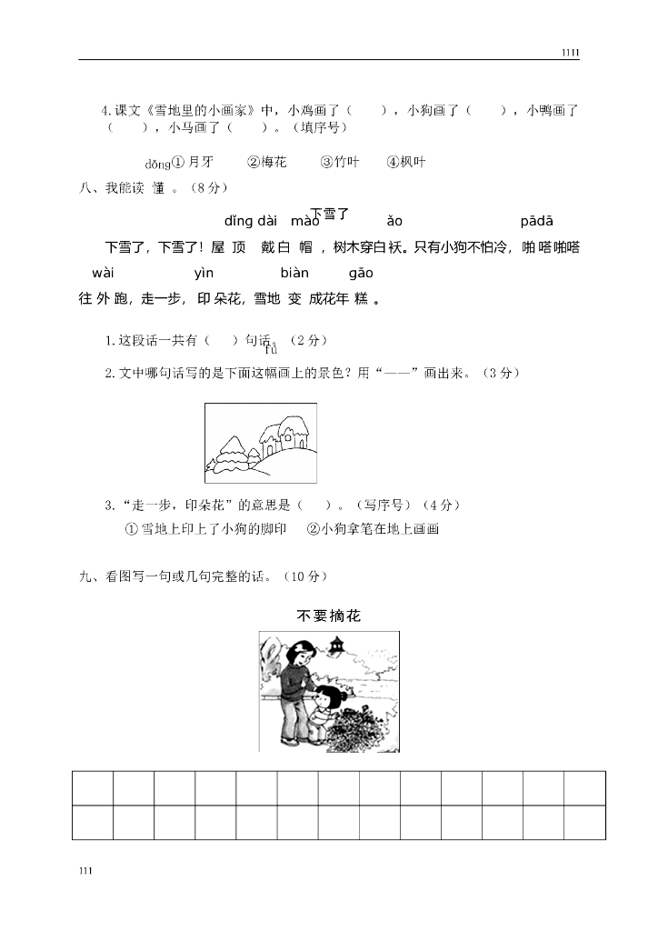 部编语文一年级上册期末试卷 (4).doc