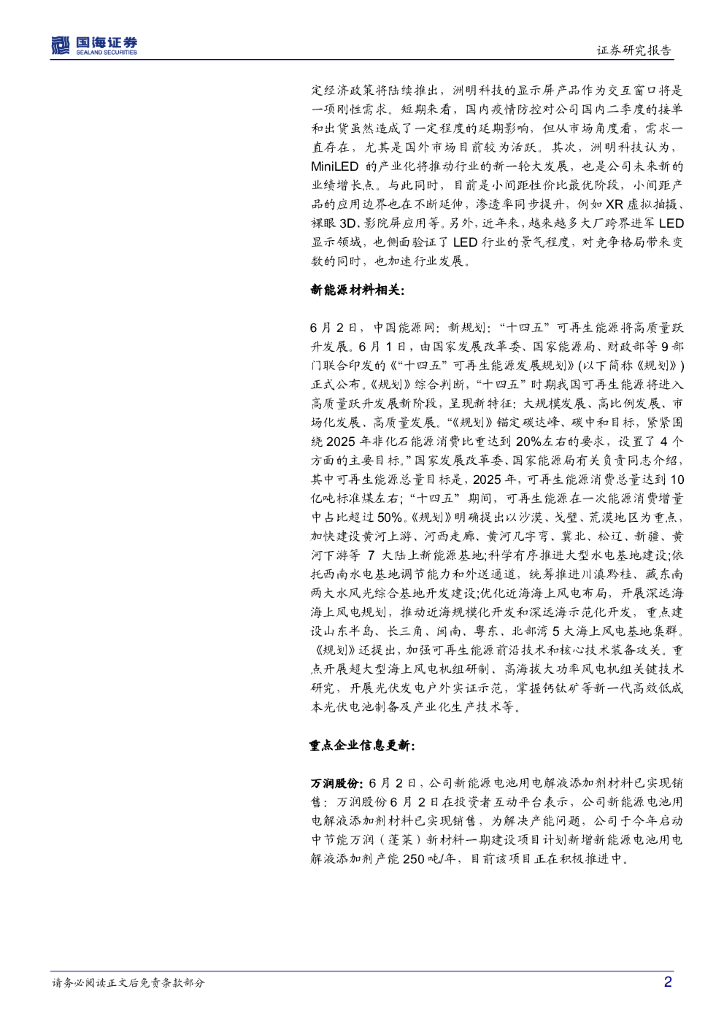 国海证券:化工行业新材料周报:《“十四五”可再生能源发展规划》正式公布,万润电解液添加剂材料实现销售.pdf