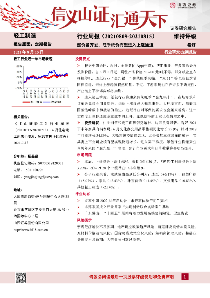 山西证券:轻工制造行业周报:涨价函齐发,旺季纸价有望进入上涨通道.pdf
