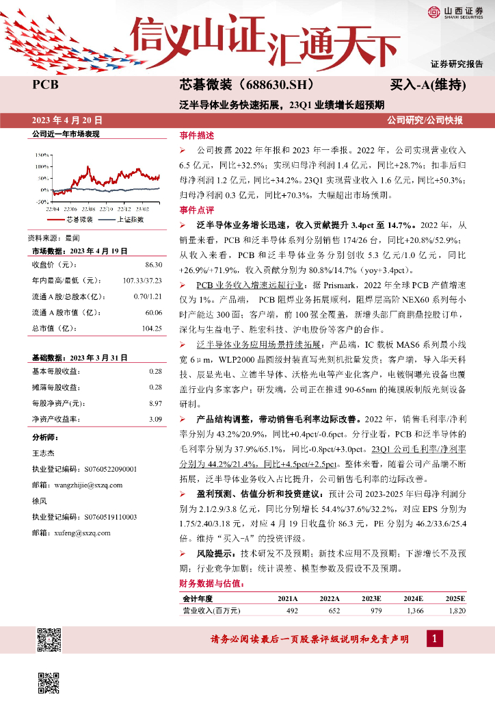 山西证券:芯碁微装(688630)-泛半导体业务快速拓展,23Q1业绩增长超预期.pdf