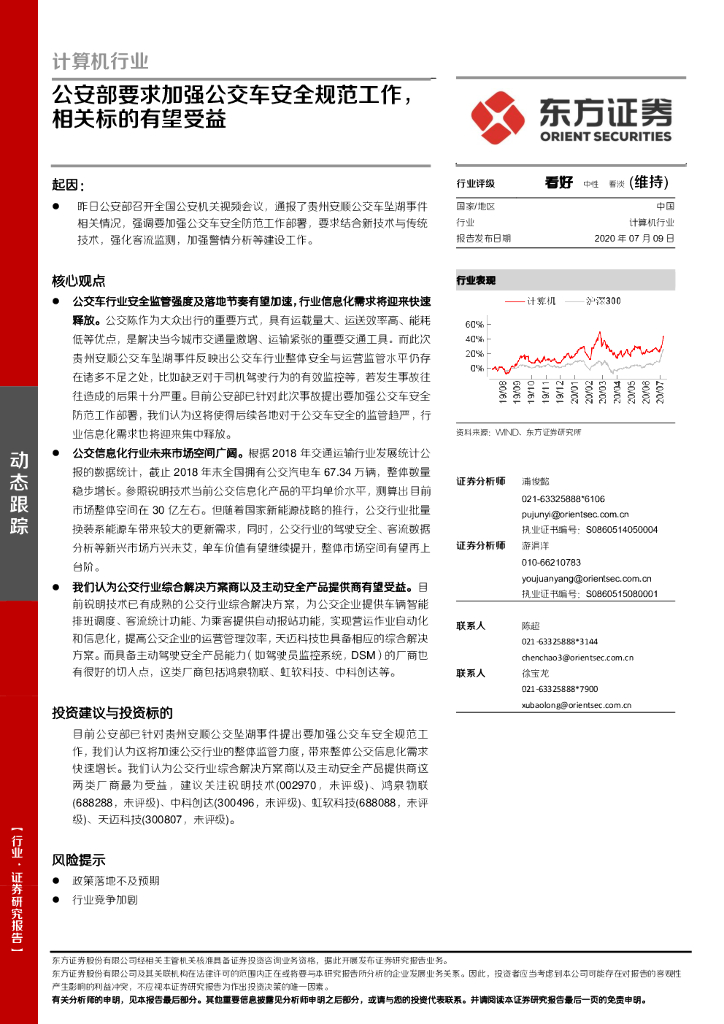 东方证券:计算机行业:公安部要求加强公交车安全规范工作,相关标的有望受益.pdf