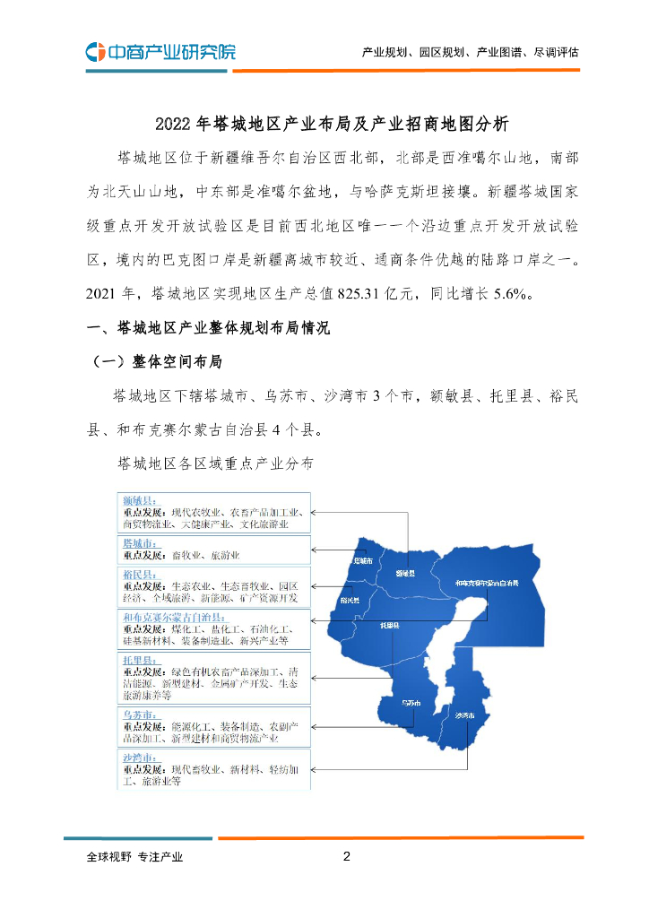 中商产业研究院:2022年塔城地区产业布局及产业招商地图分析.pdf