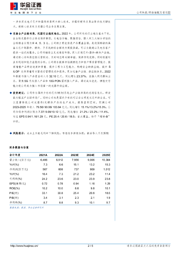 华金证券:光迅科技(002281)-全产业链布局优势明显,长期发展可期.pdf