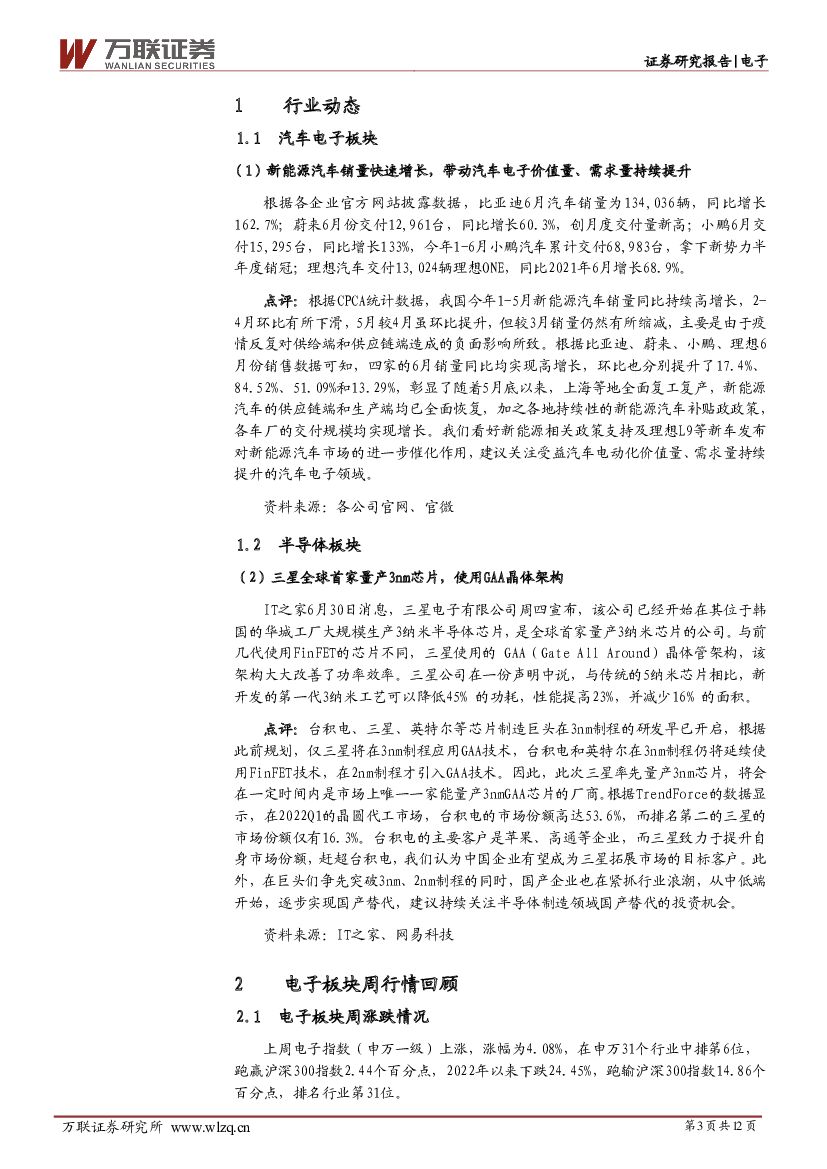 万联证券:电子行业周观点:汽车电子下游需求旺盛,三星首家量产3nm制程芯片.pdf